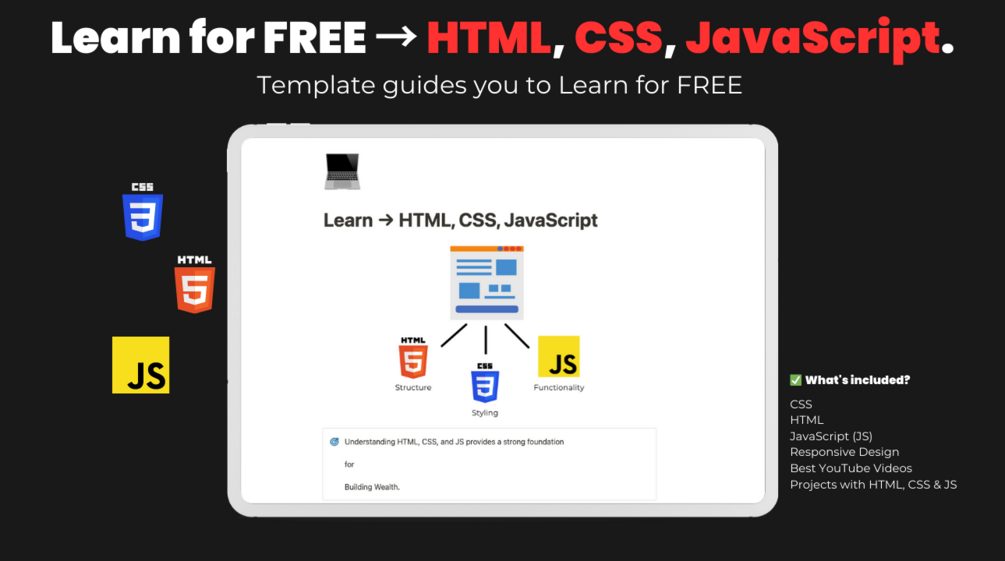 This template will show you how to Learn HTML, CSS, and JavaScript for FREE